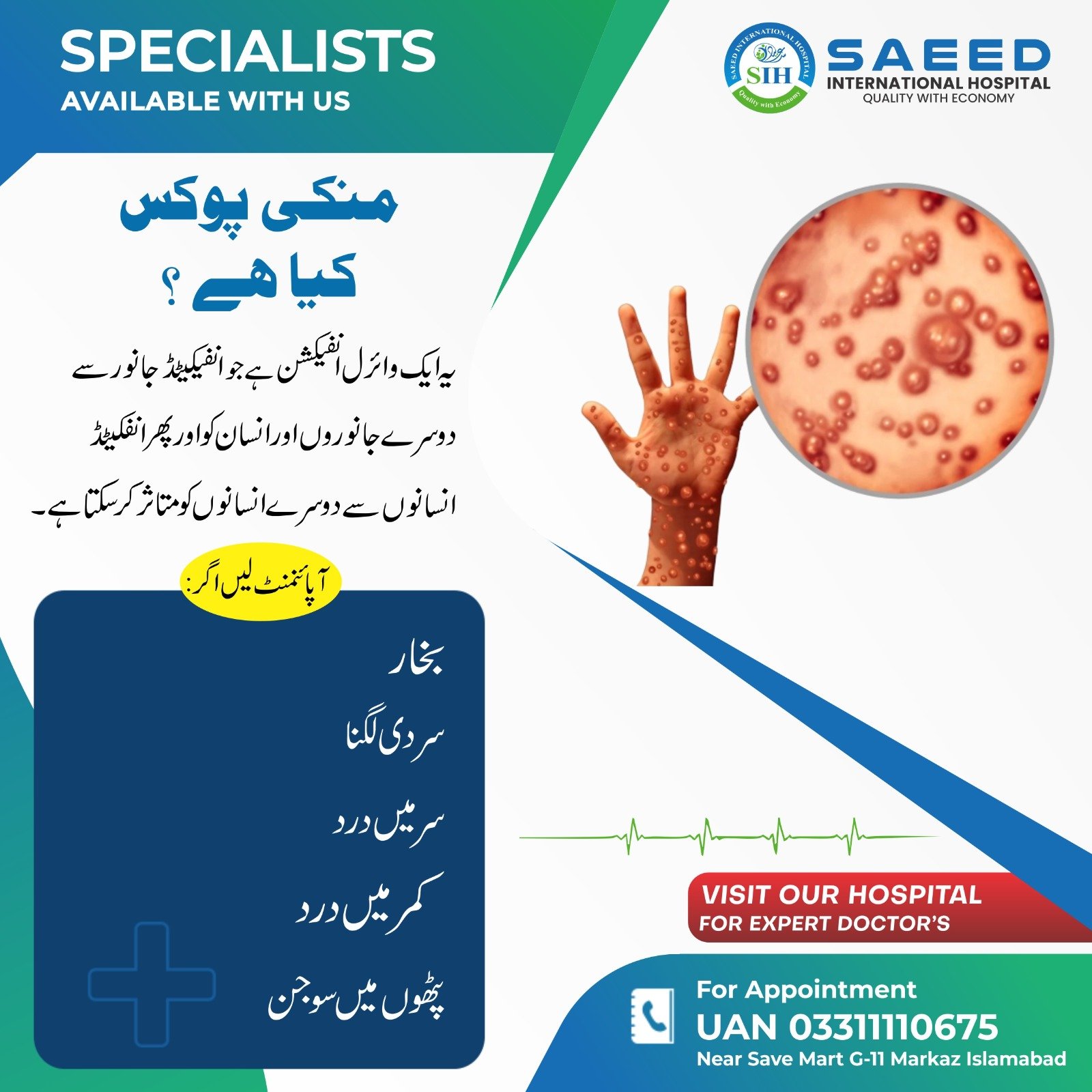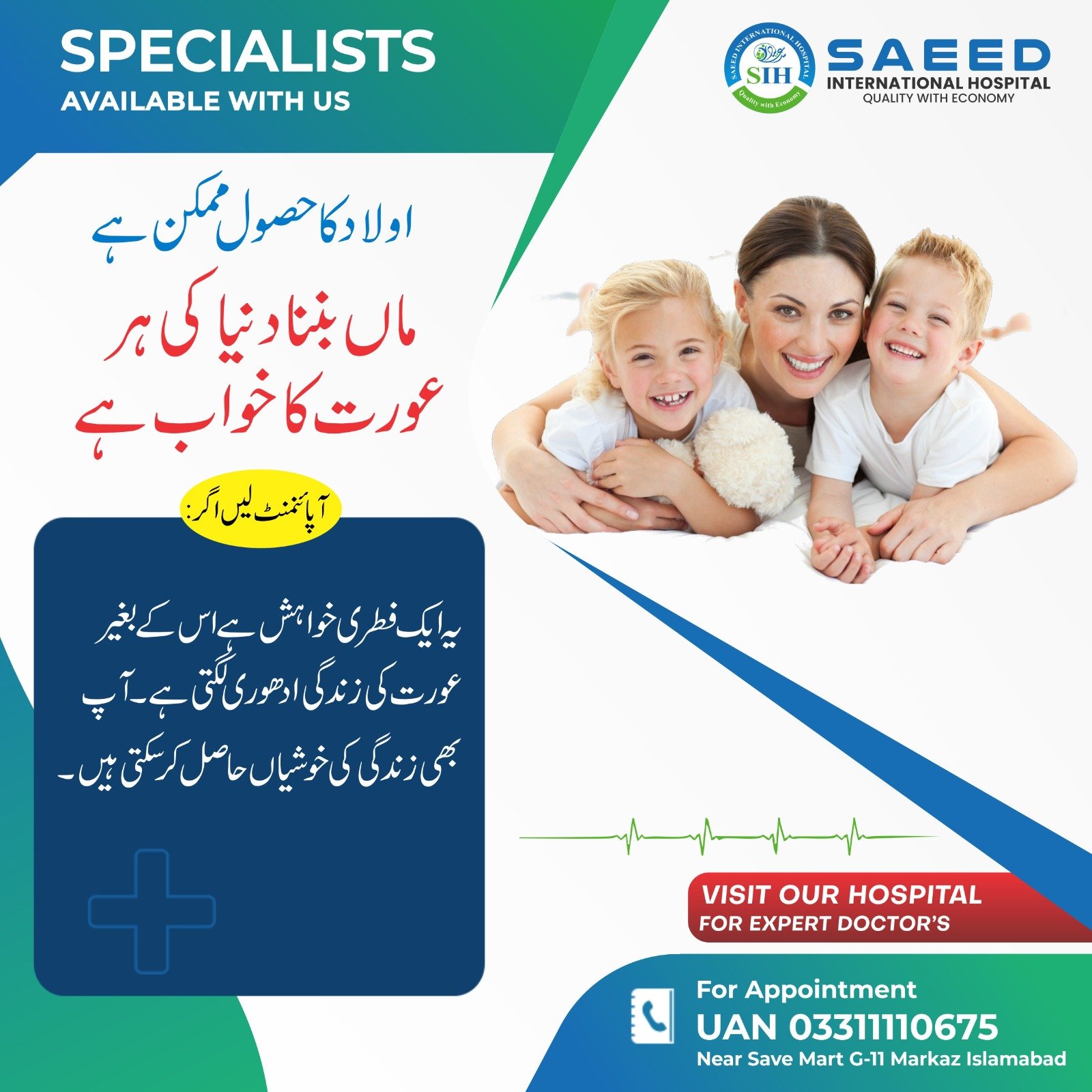 At Saeed International Hospital G-8, we merge cutting-edge medical services with compassion, aiming to be your healthcare partner for life. Your health is our priority, and we look forward to serving you with excellence, empathy, and accessibility.